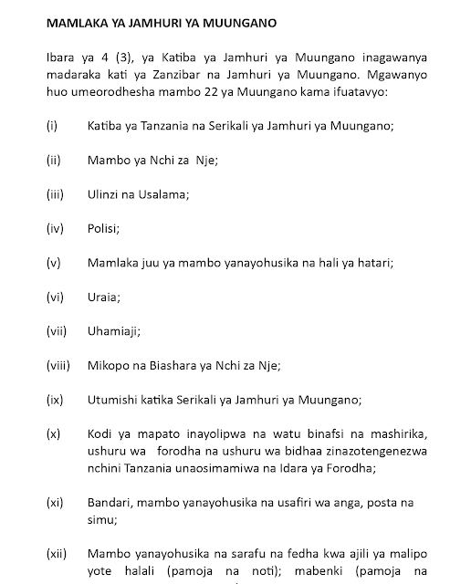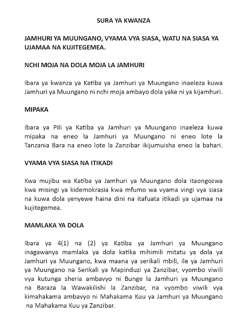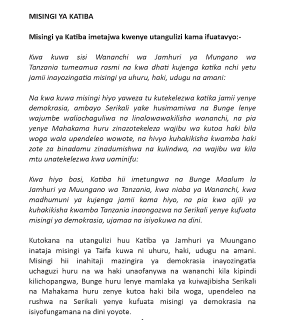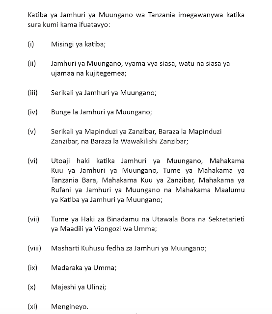 MPANGILIO WA KATIBA YA JAMHURI YA MUUNGANO WA TANZANIA